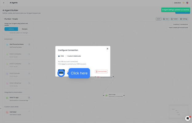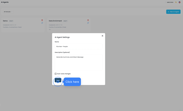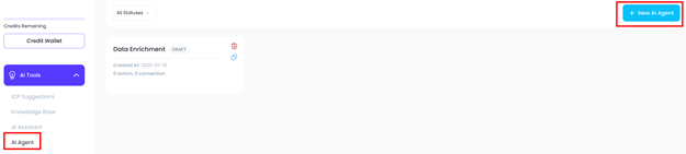 - Go to AI Tools → AI Agents in your Lead Generation Tool dashboard.