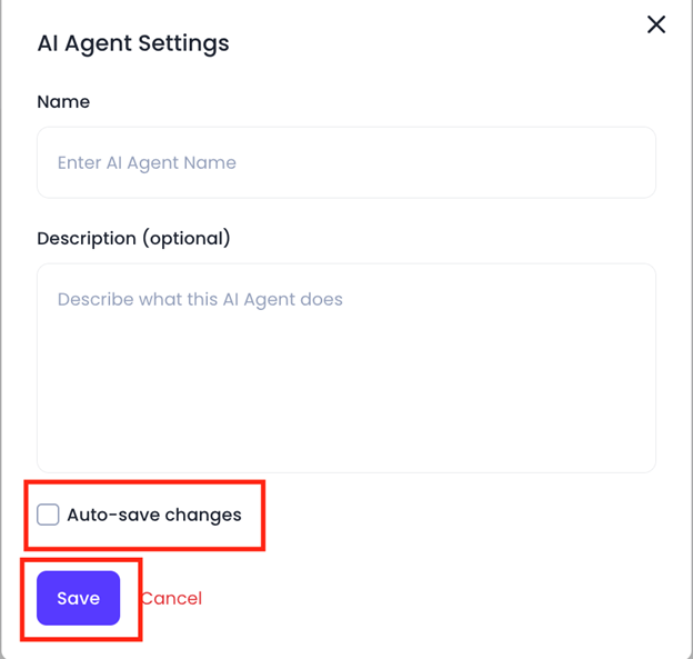 - Add a description outlining the AI agent’s tasks (e.g., generate summaries and direct messages).
